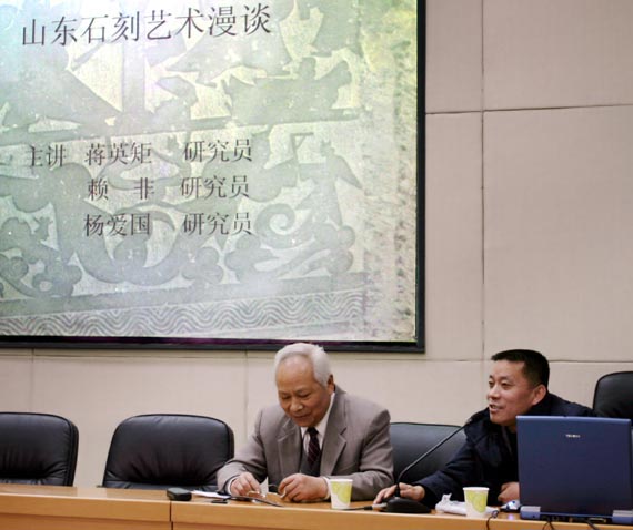 董占军副主任、孔笛等专业教师及教务处副处长任仲泉、山东石刻艺术博物馆焦德森馆长、赖非研究员出席了座谈会。会上各位老师就山东石刻艺术的分类、艺术风格、历史价值等相关专题展开了广泛而深入的探讨,同时实现了现场的“互动”,各位老师对同学们提出的问题逐一进行解答,现场气氛异常热烈。
