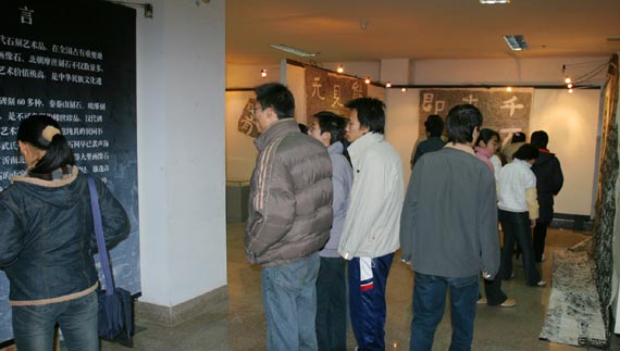 山东地区遗存的古代石刻艺术品,在全国占有重要地位。其中秦汉碑刻、汉画像石、北朝摩崖刻石不仅数量多,内容丰富,而且历史、艺术价值极高,是中华民族文化遗产的瑰宝,今次展览主要围绕以上几方面内容展开。我们看到,这些石刻拓片,或鸿篇巨制,庄严肃穆;或信手挥洒,轻松活泼,令同学们在感慨古齐鲁文化博大精深的同时也增长了自己的专业知识。