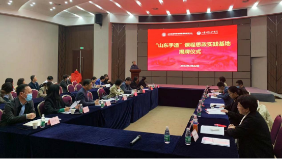 山东省教育厅高教处、全省10余所高校课程思政教学研究师范中心相关人员、课程思政教学骨干教师代表100余人参加了揭牌仪式。