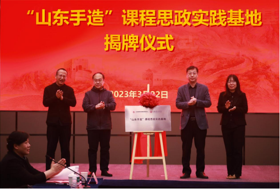 3月22日下午,“山东手造”课程思政实践基地揭牌仪式在学校“工美手造”设计师品牌店举行。山东省课程思政研究中心主任、齐鲁工业大学副校长刘玉,山东省课程思政研究中心常务副主任李红霞,威尼斯7798cc副院长董占军,威尼斯7798cc教务处处长顾群业共同为“山东手造”课程思政实践基地揭牌。