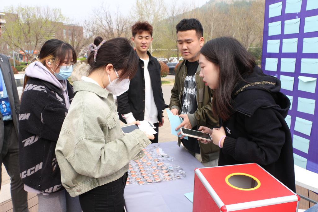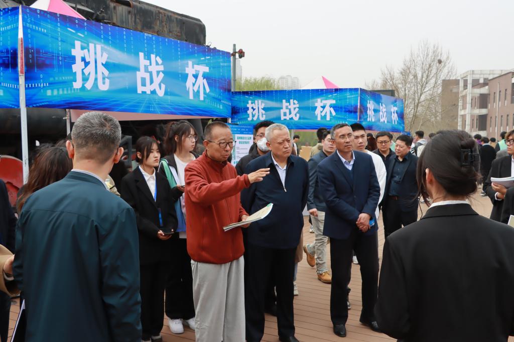 16支参赛队伍在设计师广场进行作品展示汇报。各队伍负责人从作品选题的缘由、社会意义、竞争优势、应用价值以及创新设计细节等方面一一对参赛作品进行推介。学校领导认真倾听各项目团队的现场汇报,与团队成员就项目内容进行了深入交流,并从项目可行性、创新性等方面给出了专业指导意见。