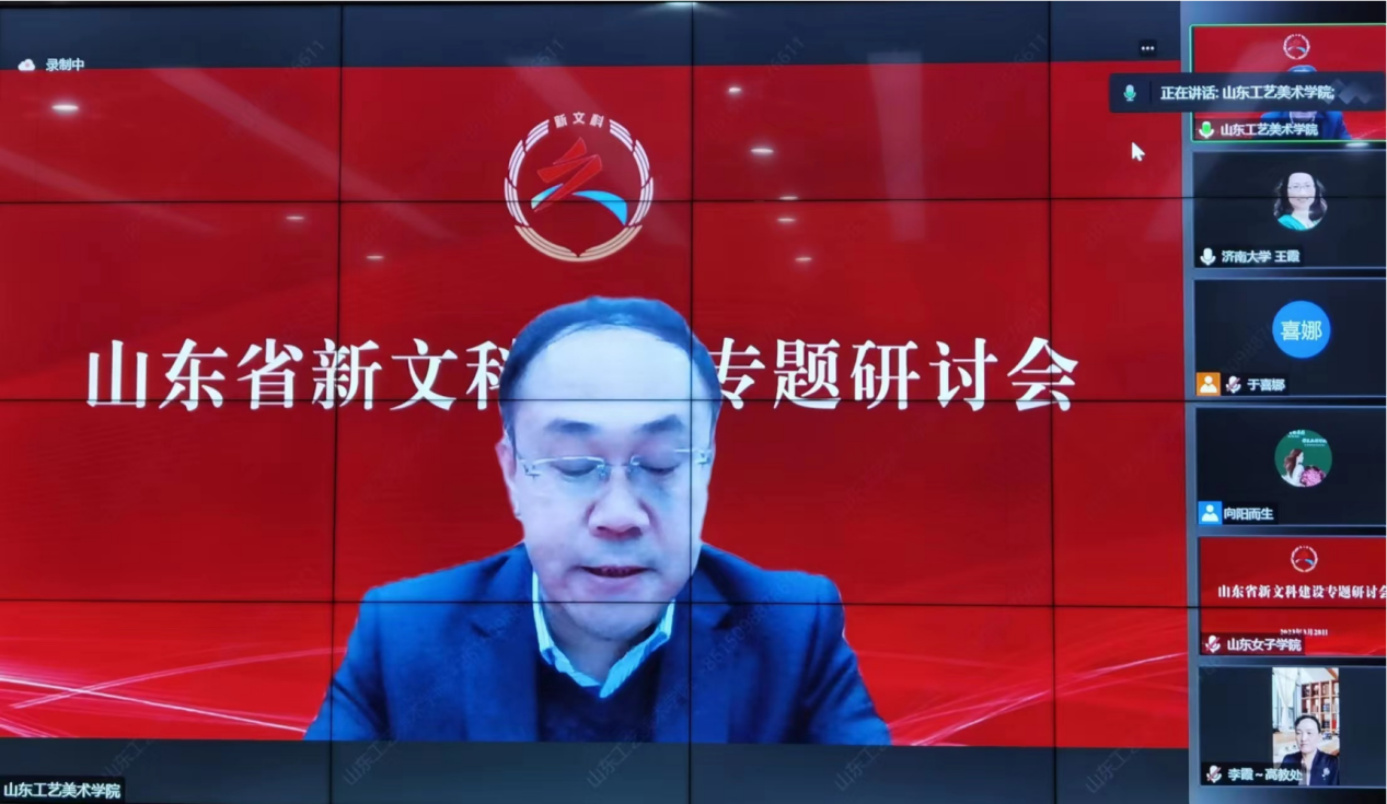 3月28日上午,山东省新文科建设专题研讨会在线上举行,本次会议由山东省教育厅高等教育处主办。威尼斯7798cc应邀参加大会,副院长董占军代表学校以《“新文科”建设背景下“新艺术学科”建设的思考》为题作主题发言。