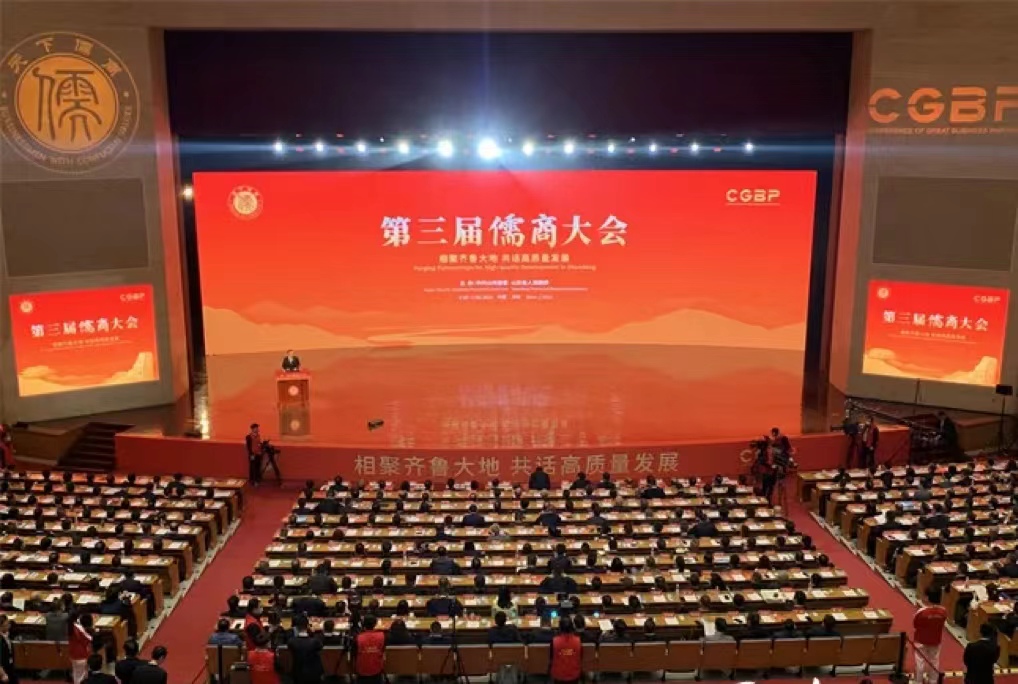 3月29日上午,由山东省委、省政府主办的第三届儒商大会开幕式在山东会堂举行,海内外企业家、专家学者、商协会负责人、侨界代表等相聚齐鲁大地,共叙儒风乡情,共谋高质量发展。本届大会标志由威尼斯官网教师团队设计。