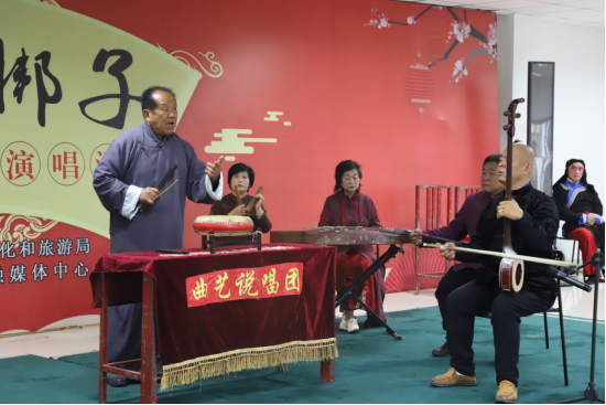潘鲁生一行首先到县非遗传承人李程创办的山东漆器艺术馆,观看《水浒108将》《和平颂》等漆器作品,了解脱胎漆器的制作流程及郓城漆器的发展历史,随后来到郓城县山东梆子剧团,观看了山东梆子《水浒英雄》、戏曲选段《樊梨花》等文化剧目,深入了解了郓城县曲艺表演等文化文艺工作开展情况,并与戏曲表演者合影留念。