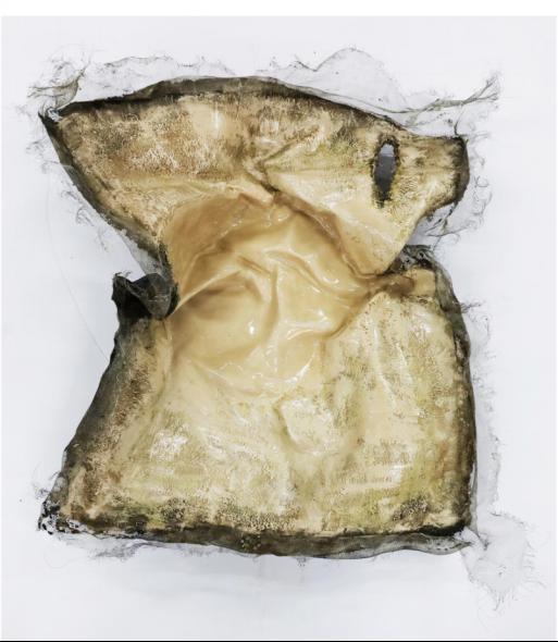 朱夏磊《Lost Frame》,金属丝网、废旧纸、碳粉、天然大漆