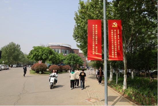 整体氛围营造坚持全方位、立体化、无死角,覆盖学校长清校区、千佛山校区、产教融合青岛基地、创新创业学院(淄博),包括校园主干道、主地标建筑、办公楼、学生餐厅、图书馆、运动场地等,让广大师生不自觉融入主题教育的浓厚氛围,真正入脑入心,并转化为学习工作的巨大动力,助力主题教育落实落地。