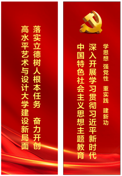 为更好地突出学校专业特色,凸显学校设计水准,立即组织青年教师组成骨干设计团队就专题网站主形象图、道旗视觉图、宣传栏大海报进行设计解读,既要符合上级关于主题教育的相关文件指示精神,同时又力争把学校设计优势淋漓尽致地发挥出来。
