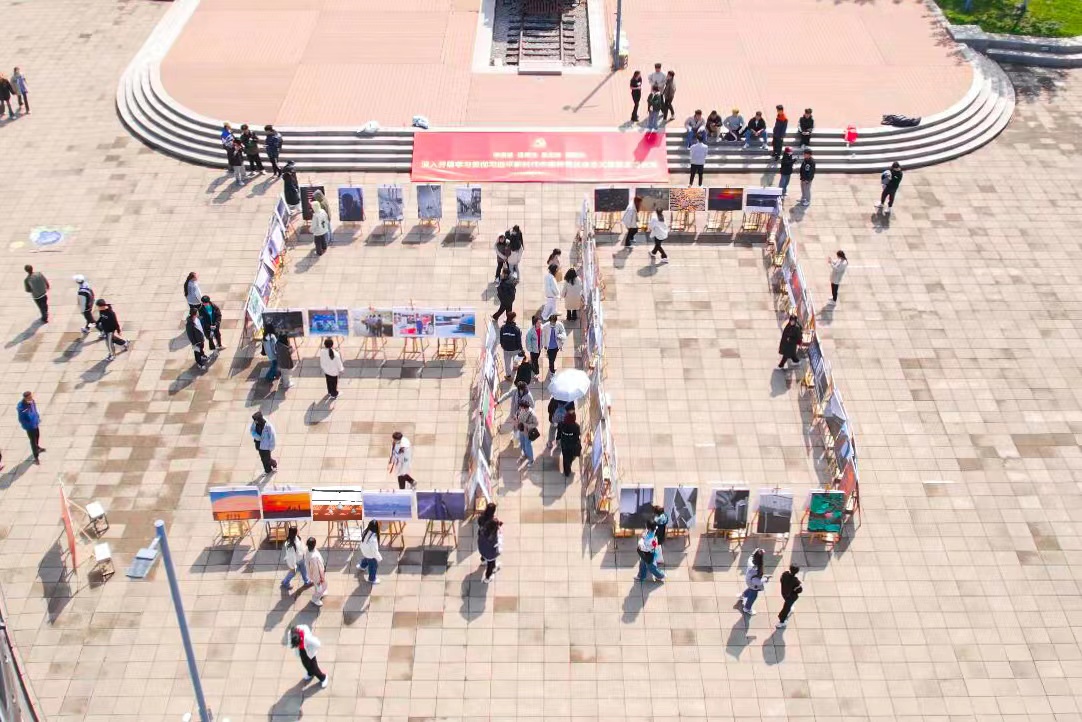 为深入开展学习贯彻习近平新时代中国特色社会主义思想主题教育,4月25日,由党委宣传部、团委主办,数字艺术与传媒学院团总支承办的建校50周年系列活动“学思践悟二十大,爱校荣校勇担当”主题摄影展在长清校区设计师广场举行。党委书记王晓娟,纪委书记苗新民,副院长韩世春,党委委员、宣传部部长韩文涛到现场观看指导摄影展。