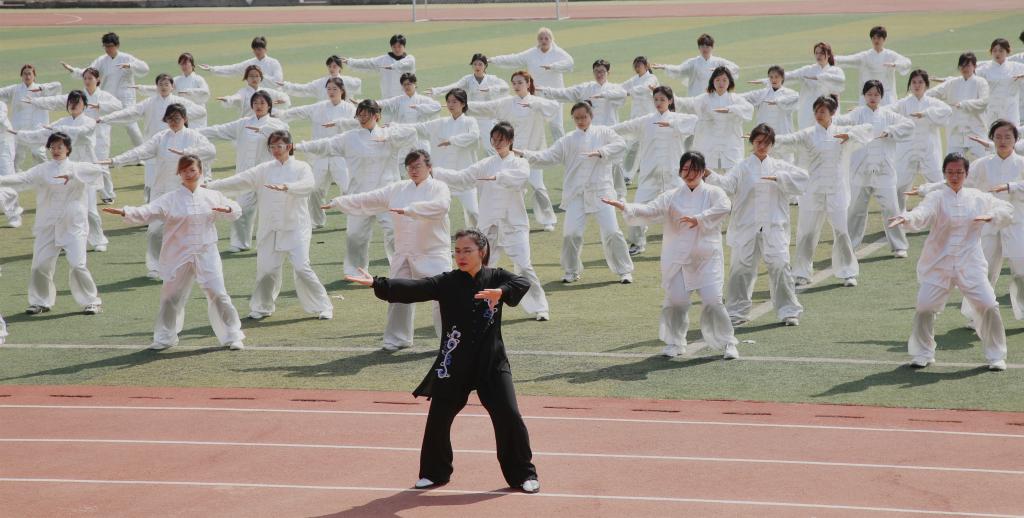 随后,裁判员代表陈强、运动员代表庞豪龙分别在开幕式上庄严宣誓。裁判员表示要做到“公平、公正、公开”执裁,保证运动会顺利进行。运动员表示要顽强拼搏,赛出风格,赛出水平,自觉遵守体育道德。接着,全校师生共同集中观看了太极拳和啦啦操两场团体操表演,整场表演气势恢宏,特色突出。