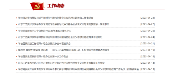 【工作动态】全面报道学校层面主题教育重要部署、重要会议、重大活动安排等,为主题教育提供第一手工作资讯。