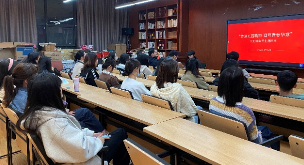 4月26日,马克思主义经典著作研读社团组织开展专题读书分享会,邀请社团优秀成员刘堂鑫带领大家学习党的二十大报告中习近平总书记对广大青年的殷切寄语,文字高度浓缩,字字千钧,大家倍感振奋,深受鼓舞。交流分享环节,社团成员从时政相关话题、中华优秀传统文化的认知与传承等方面展开讨论,立足于专业和自身所学,一起交流想法,在相互学习中共同成长。