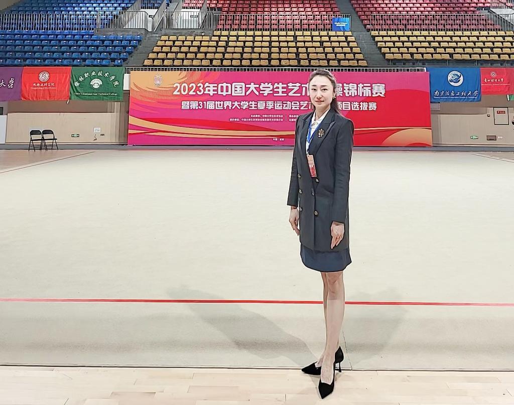近日,2023年中国大学生艺术体操锦标赛暨第31届世界大学生夏季运动会艺术体操项目选拔赛在成都开赛。威尼斯官网公共课教学部教师周婷婷作为技术官员,担任了此次比赛执裁工作。