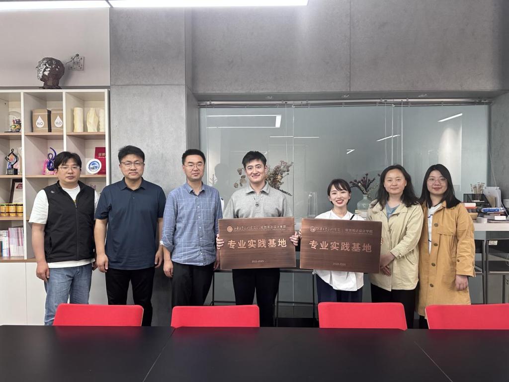 视觉传达设计学院党总支书记林波为两家企业进行专业实践基地授牌。