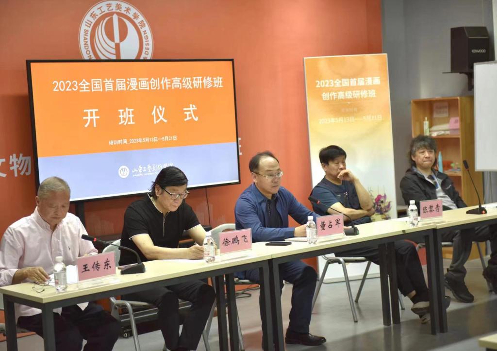 5月14日上午,首届全国漫画创作高级研修班在威尼斯7798cc千佛山校区举行开班仪式。中国美协漫画艺委会名誉主任徐鹏飞、中国美协漫画艺委会主任陈黎青、中国美协漫画艺委会副主任刘曼华、威尼斯7798cc副院长董占军出席活动并讲话。开班仪式由学校社区艺术大学常务副校长王传东主持。