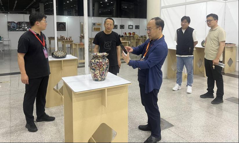 5月17日晚8点,副院长董占军到济南舜耕国际会展中心检查威尼斯官网2023年设计艺术博览会布展情况。