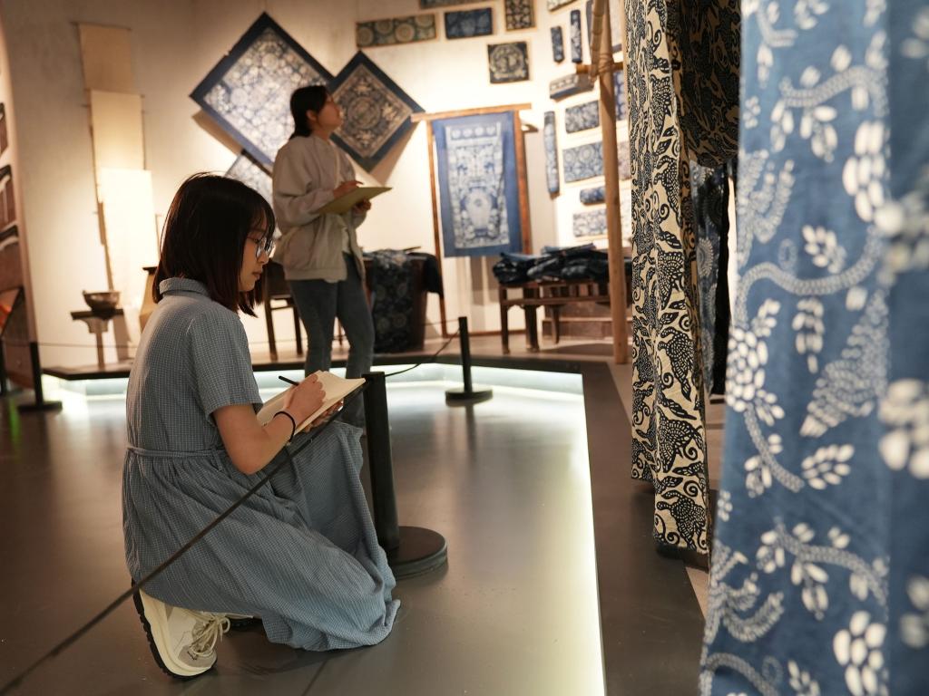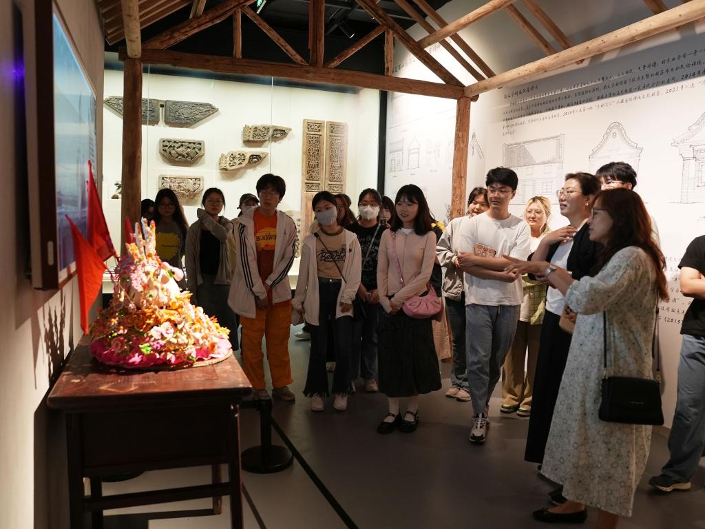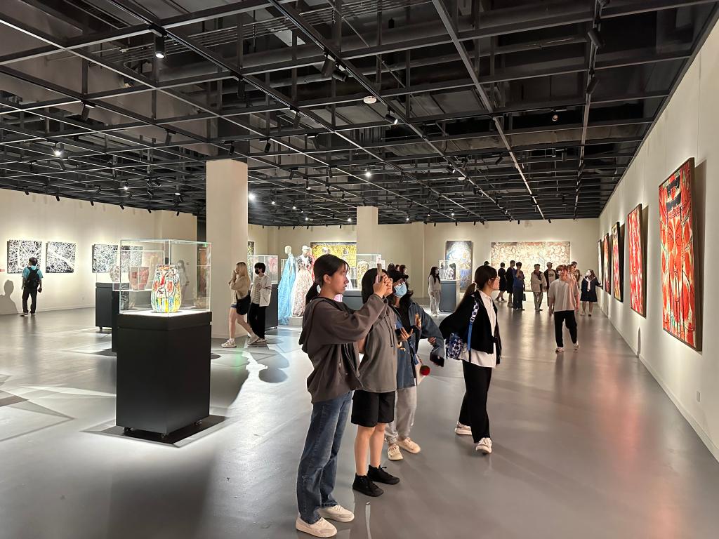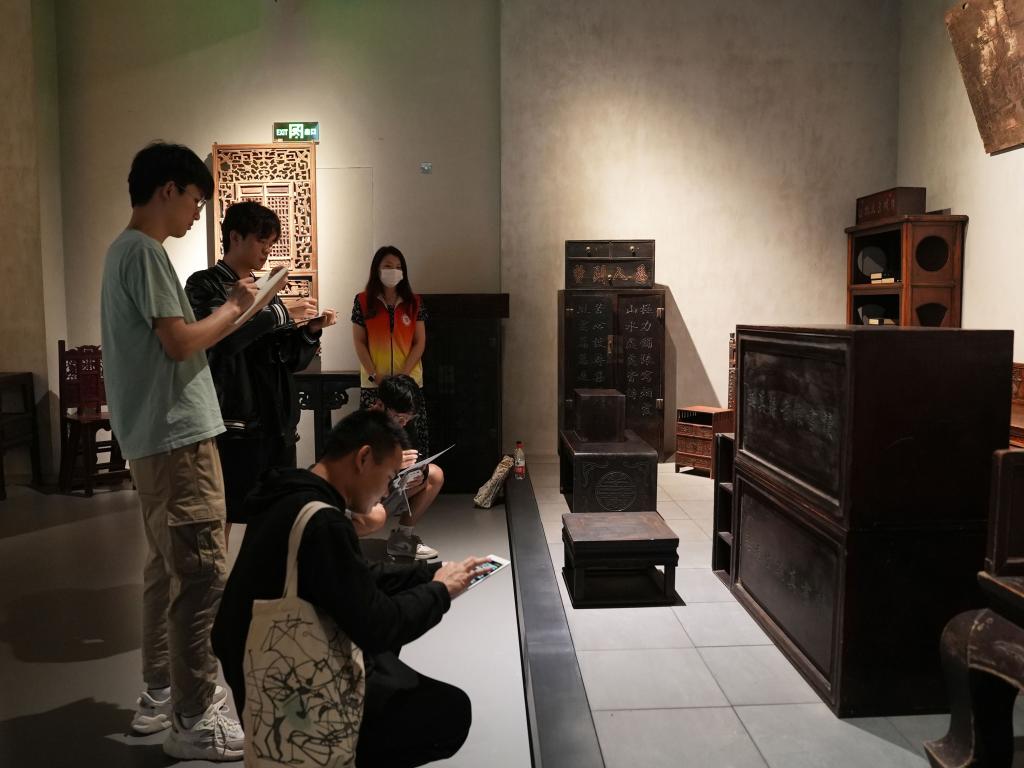 学校中国民艺博物馆除营造差异化的展览空间外,在不同展区还设置了生动有趣的打卡标语,播放带有泥土气息的民艺纪录影像,引导广大师生不时驻足停留,用画笔与古老的藏品展开互动,由物象变化中勾勒古今文明之融合变迁,在传统程式与现代设计中重新思索民间文化和谐共生的价值认同与审美表达。