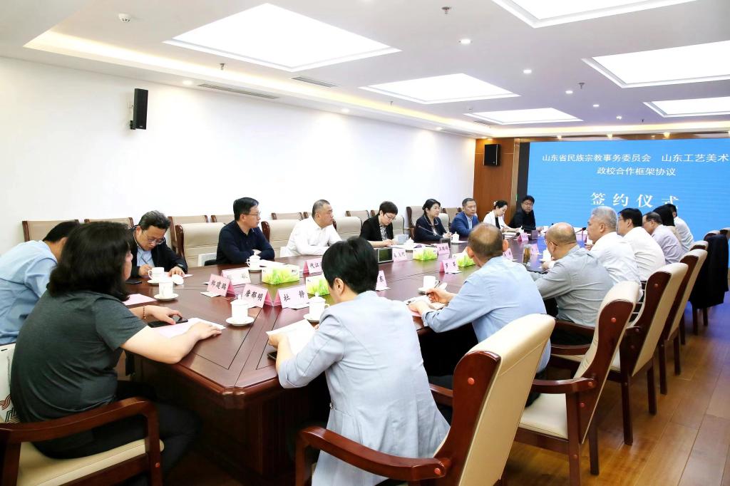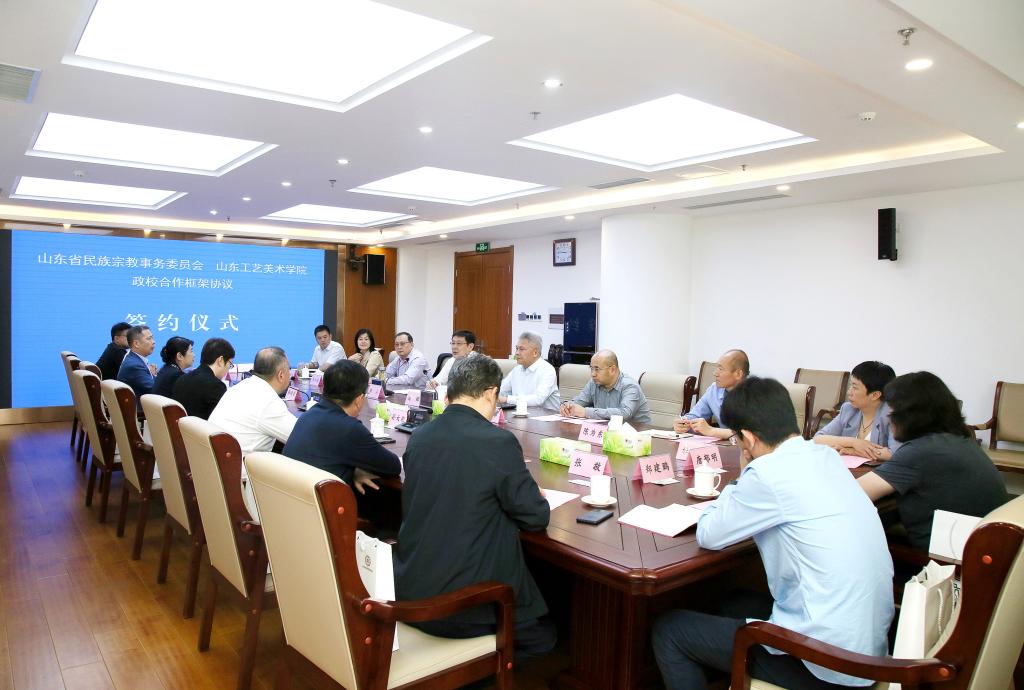 5月18日下午,威尼斯7798cc与山东省民族宗教事务委员会签署政校合作框架协议。省委统战部副部长、省民族宗教委党组书记白山,省民族宗教委党组成员、副主任马辉,省民族宗教委二级巡视员李介强,威尼斯7798cc党委书记王晓娟,副院长张艳霞,党委委员、统战部部长孙大刚出席签约仪式。马辉主持会议。