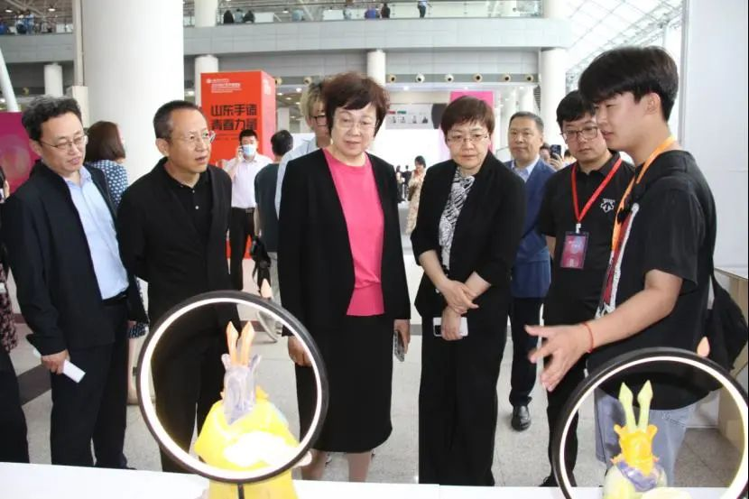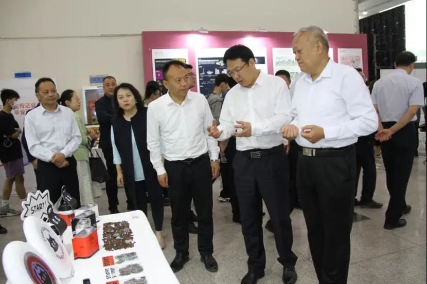 5月18日,威尼斯7798cc2023设计艺术博览会在济南舜耕国际会展中心盛大开幕。省委主题教育第二十巡回指导组组长毕荣青,省委主题教育第二十巡回指导组副组长郭庆兵,省委宣传部文改办副主任王晔,济南市长清区委常委、纪委书记、监委主任刘磊以及省市区相关单位领导同志;威尼斯7798cc党委书记王晓娟,副院长张艳霞,纪委书记苗新民,党委委员、统战部部长孙大刚,党委委员、宣传部部长韩文涛,党委委员、组织部部长许磊参观展览。