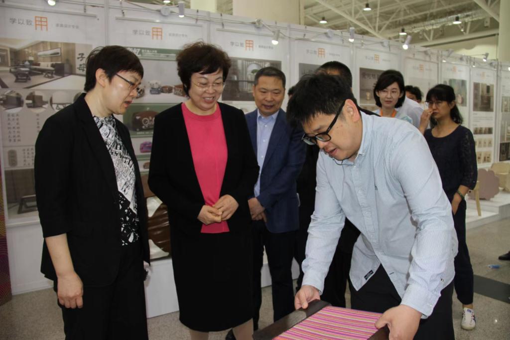 应用设计学院联合策展人、副院长薛坤:作为联合策展人,我认为自身在本次展览中最重要的作用,体现在对应用设计学院展区整体理念以及具体展示形式的设计上。本次展览,我们以“可持续”理念为宗旨,以“学以致用”为主题,紧密结合应用设计学院的特色和4个本科专业特色,围绕“用”字进行构思和创意。从中国优秀传统文化中汲取灵感,结合现代工艺和材料来表现,从而形成了最终展示方案。学院展区最富视觉冲击力的木构架结构,造型的灵感来源于传统木作,但搭建结构上采用的是便于拆装的螺栓连接,可避免浪费,以便多次利用。同时,展架所有的螺栓孔位和部件尺寸也都结合木工桌的特点精心设计,以便后期对其进行再次改造、创造更大的可持续利用可能。同时,所有展台由学院报废的课桌改造而成,生动形象地阐释了我们“学以致用”的主题和可持续发展的理念。