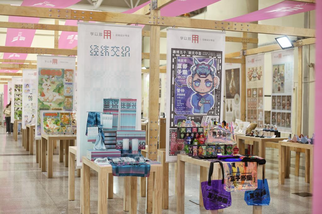 应用设计学院联合策展人、副院长薛坤:正如本届设计艺术博览会应用设计学院展区主题“学以致用”,学院师生在本届毕业设计过程中力求“实用”与“实践”,主动对接国家、省、市重大战略,坚持以山东省黄河流域民俗文化应用、“山东手造”助力黄河文化发展、大运河文化资源业态发展、助力乡村振兴等主题为核心进行设计创作。家具设计专业毕设作品,主要特色体现在可持续材料、适老关怀、产教融合上。如部分作品选用黄河流域本土白蜡杆材料制作而成,白蜡杆耐寒、耐旱、耐涝、速生,且具备良好的柔韧性,以前一直作为民间农具、武术器械杆件使用,经济价值未得到充分发挥。学院师生在充分实地调研的基础上,通过创意与设计将其转化为家具产品,让这种本土民间材料获得了新生,增加了白蜡杆的经济价值,对服务于地方经济产业作出了切实贡献。学院与奥地利BLUM公司及愉悦家纺深度合作,开发了系列户外产品与功能家具;旅游产品设计毕设作品立足黄河流域和省内文旅资源开展毕业设计创作,重视传统与现代的融合,关注毕业设计与市场需求的联接;印刷设计和妆扮设计毕设作品则是以发掘中国优秀传统文化为亮点,弘扬文化自信。