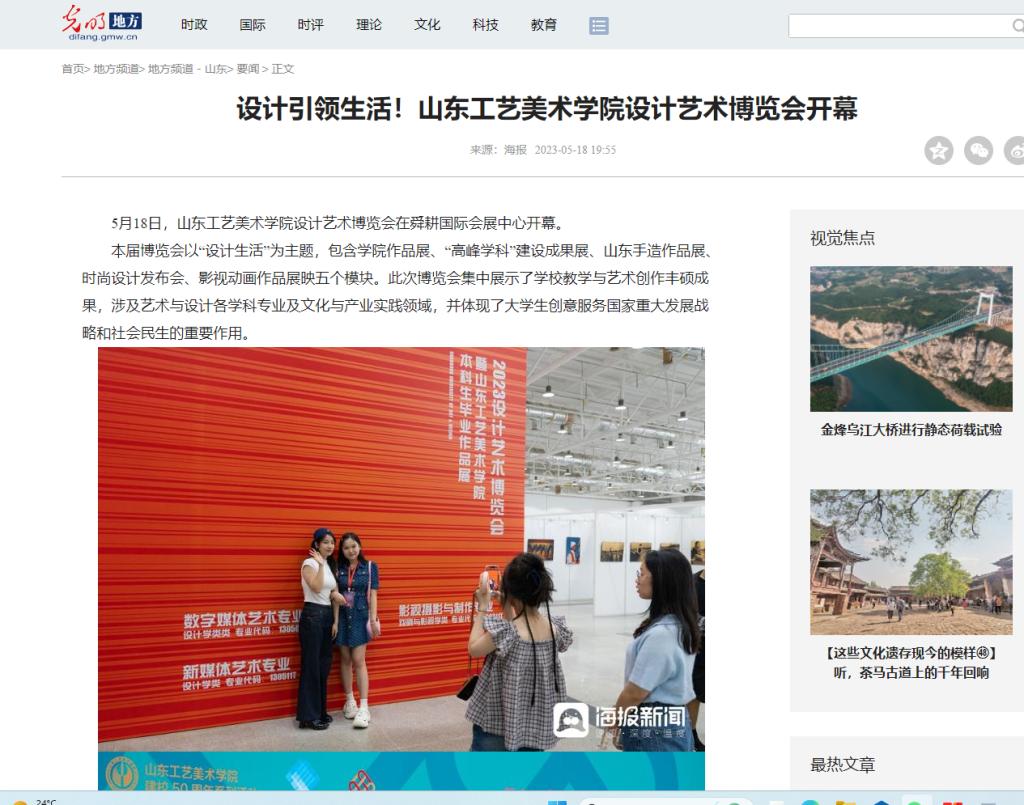 展览受到社会各界和各大媒体的广泛关注。新华网、光明网、中国教育报、中国教育在线、大众日报、山东卫视、大众网等数十家媒体以及学习强国、灯塔-党建在线、山东教育发布等重要平台对展览盛况及优秀毕业设计作品进行了报道。记者们通过视频、文字等形式,记录师生传承弘扬中华优秀传统文化的新实践,描绘青年学子服务“山东手造”推进工程的新探索,展现学校积极探索艺术设计与新文科、新工科间的“学科互涉”以及产教、科教融合新路径。网友们在评论区纷纷留言:“国家需要这样的艺术设计人才”,“看着这些学生们精益求精制作的毕业设计,感觉特别治愈”。