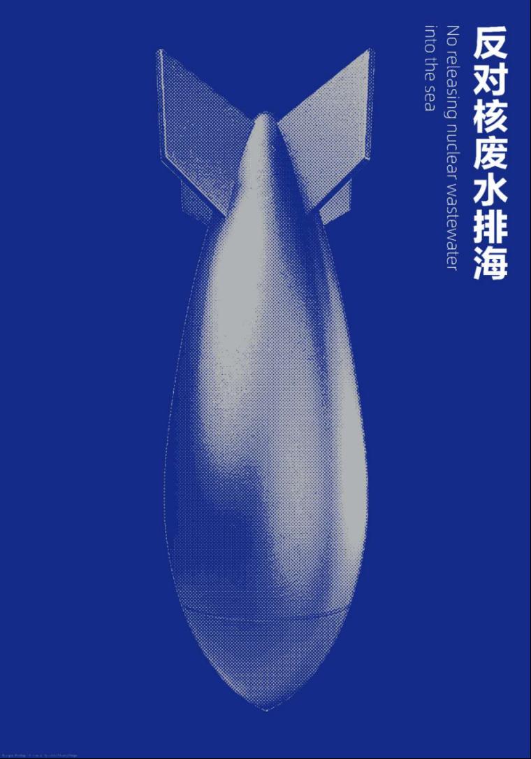 《反对核废水入海》以核弹形态为创作灵感,核废水入海给海洋生态造成不可逆转的危害,以此来呼吁大家加强对环境生态保护的重视。