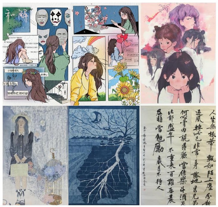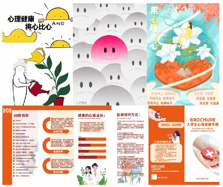 以艺润心,激发文化创作动力。活动期间举办了心理健康教育主题文创系列大赛,涵盖主题平面设计、别出“心”裁,赋“形”我塑心理IP形象设计、“扇”除烦恼创意设计、“画心·话心”心理绘画、“书情话意,签签静心”书签设计五项活动。大赛分别由视觉传达设计学院、工业设计学院、服装学院、造型艺术学院、基础教学部、国家产教融合青岛基地承办。同学们积极踊跃参与,利用专业所长,以图达意,以画聚心,以艺润心,记录即时心情与生活感悟,传递积极生活的正能量,共收到作品700余幅。经专家评委评审,最终共遴选出一等奖10名、二等奖20名、三等奖30名、优秀奖若干。学校将推荐优秀作品参加2023年山东省学校心理健康教育月活动评比。