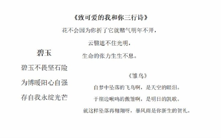 “致可爱的我和你”三行诗作品