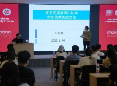 王宪昭教授结合自己长期从事的中国少数民族文学、中国神话学及传统文化大数据研究,为师生讲授在多民族神话中认知中华优秀传统文化。他认为,中国是统一的多民族国家,少数民族文化是中华民族文化不可分割的重要组成部分。神话作为人类早期文明的产物,兼具文学、历史、哲学、民俗、法学等多学科的文化功能,并具有经典性、系统性、艺术性等特征,是民族文化之根和文化创新之源,也是人类不可多得的非物质文化遗产。神话以文献、口头、文物、民俗乃至新媒体等多种形态在民间广泛流传,在新时代文化建设特别是培育中华民族的现代人文精神方面具有重要作用。王宪昭教授围绕多民族神话中的中华民族共同体意识、传统审美观念等问题,通过对神话母题分类、资源体系建构,系统阐释各民族神话是中华传统文化的组成部分、神话作为传统文化具有重要文化价值以及神话在中华民族现代文明建设中的实践路径。在谈到如何继承发展优秀传统文化时,他认为,不能采用“拿来主义”的态度对待传统文化,应取其精华、去其糟粕,通过把握优秀传统文化的核心价值观念正确继承优秀传统文化,通过创新转换形式古为今用,发掘好、研究好、阐释好和应用好这些弥足珍贵的各民族神话资源,铸牢中华民族共同体意识,全面推进中华民族伟大复兴。王宪昭教授还提出,中华民族神话作为中国特色的传统文化,应正确认识其价值,可利用现代科技手段,通过建设“中国神话数据库”等母题文化传播平台的方式,延续中华文脉,提升中国国际话语权。王宪昭教授生动形象的现场演讲,为威尼斯官网师生开展非遗资源查询与符号的设计应用提供了重要思路。