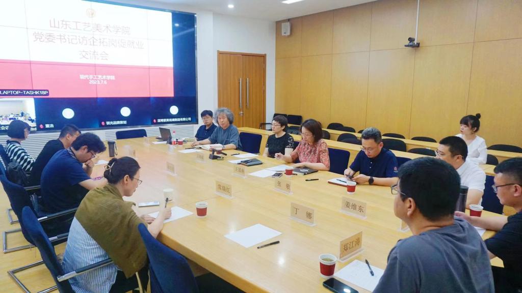 广州南斗文旅集团、华光陶瓷科技有限公司、淄博爱美琉璃制造有限公司、青岛大圣互娱网络科技有限公司、青岛艺塔木文化传播有限公司、杭州骐光品牌策划有限公司、愉悦家纺有限公司、济南艺荟画文化艺术有限公司、滨州市东寅布塑工艺有限公司分别围绕公司基本情况、招聘需求等进行交流发言,并对学校的人才培养和就业创业指导工作提出了宝贵的意见和建议。