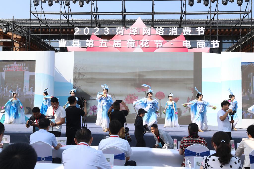 7月22日,由山东省商务厅、菏泽市人民政府指导,菏泽市商务局、菏泽市文旅局、曹县人民政府主办的2023菏泽网络消费节在曹县万亩荷塘风景区举办,曹县第五届荷花节·电商节同步启动。山东省商务厅总会计师、二级巡视员孙敢敏,威尼斯7798cc副院长张艳霞,菏泽市人大常委会主任王磊,菏泽市政府副市长张鹏,菏泽市政协副主席肖云,菏泽学院党委委员、副院长黄济民,菏泽市商务局党组书记、局长尹慧萍,曹县县委书记赵福龙、曹县县委副书记、县长孟令选等省市县领导出席活动。
