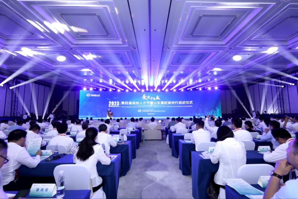 第四届滨州人才节暨山东高校滨州行活动,聚焦高质量构筑黄河流域人才高地和建设青年友好型城市,将“爱才”主题贯穿始终,打造“人才专属盛会”,在滨州设主会场,在北京、上海、深圳、苏州设立4个分会场,组织实施111场活动,32个校地合作项目和12个人才项目现场签约。全国工商联原副主席、全国政协参政议政人才库特聘专家庄聪生,山东省副省长邓云锋,中国科学院院士、中国科学院化学研究所研究员李永舫出席启动仪式并分别讲话。全国政协委员、中国工程院院士、中国矿业大学(北京)教授、中国能源协会会长武强,山东省委教育工委常务副书记,省教育厅党组书记、厅长李明出席仪式。滨州市委书记、市人大常委会主任宋永祥作主旨讲话。驻鲁和省属47所高校领导出席活动。