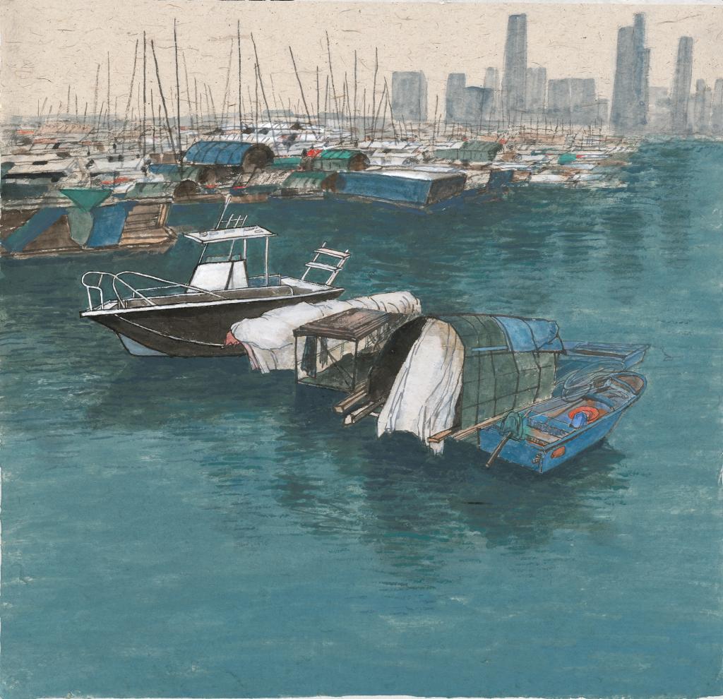 《港·避风塘》2022年124x124cm纸本·彩墨 潘鲁生