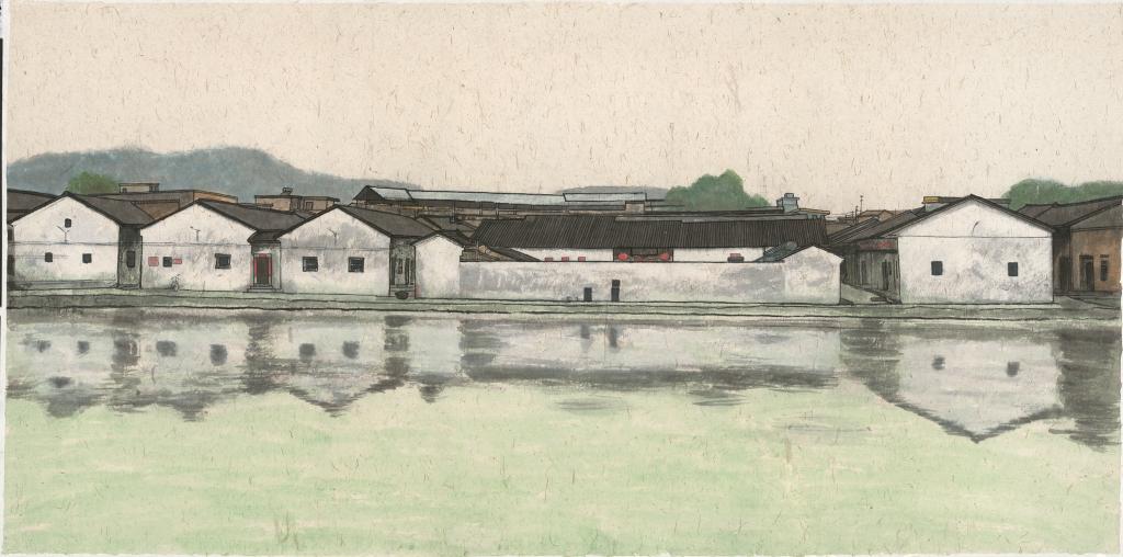 《粤·围龙屋》2022年124x245cm纸本·彩墨 潘鲁生