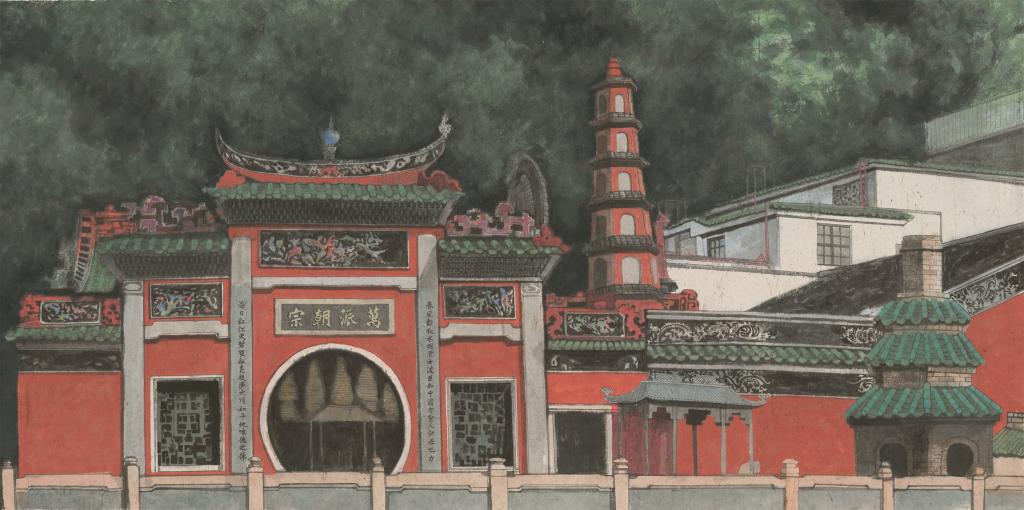 《澳·妈阁庙》2023年124x245cm纸本·彩墨 潘鲁生