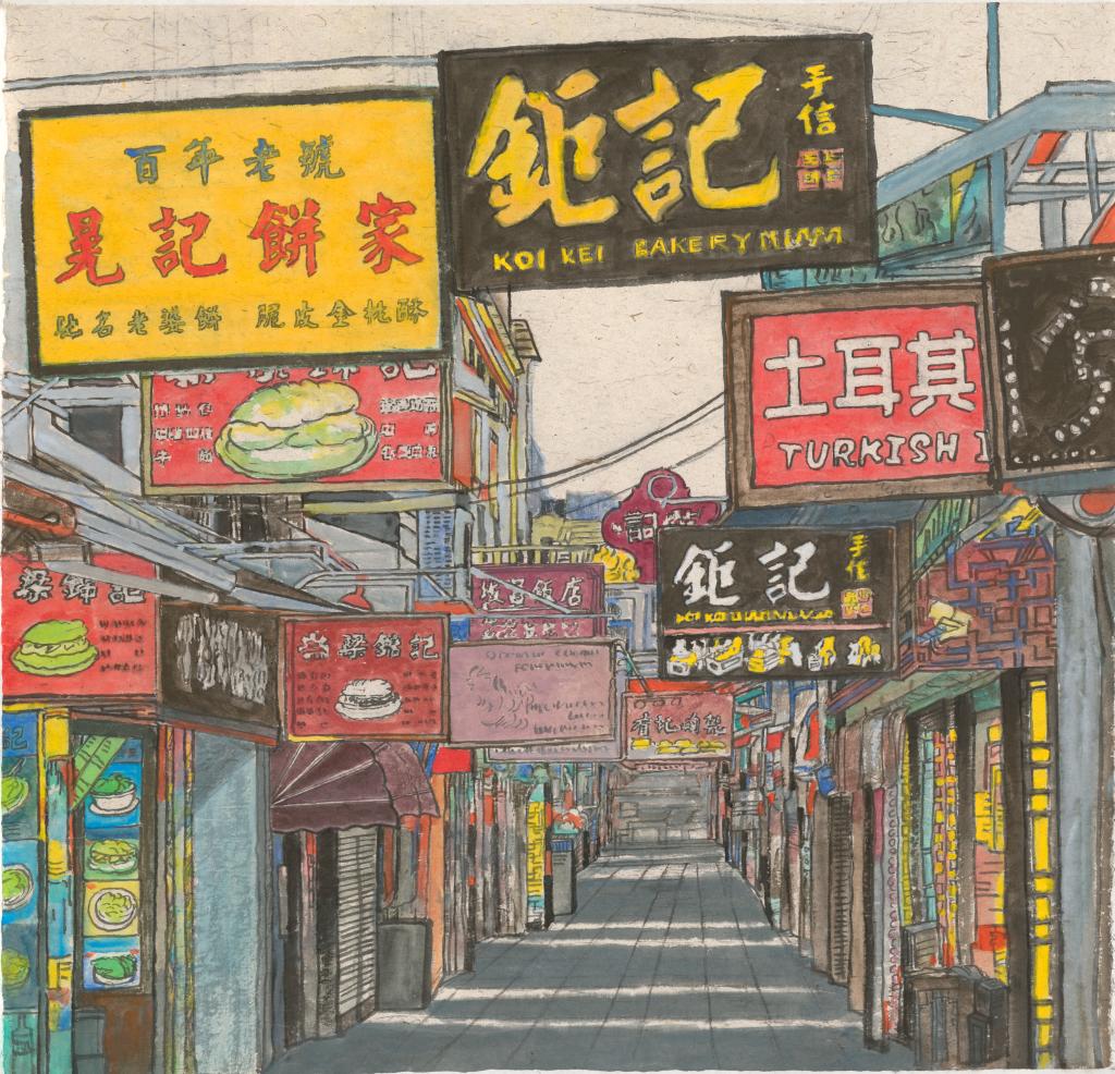 《澳·官也街市》2022年124x124cm纸本·彩墨 潘鲁生