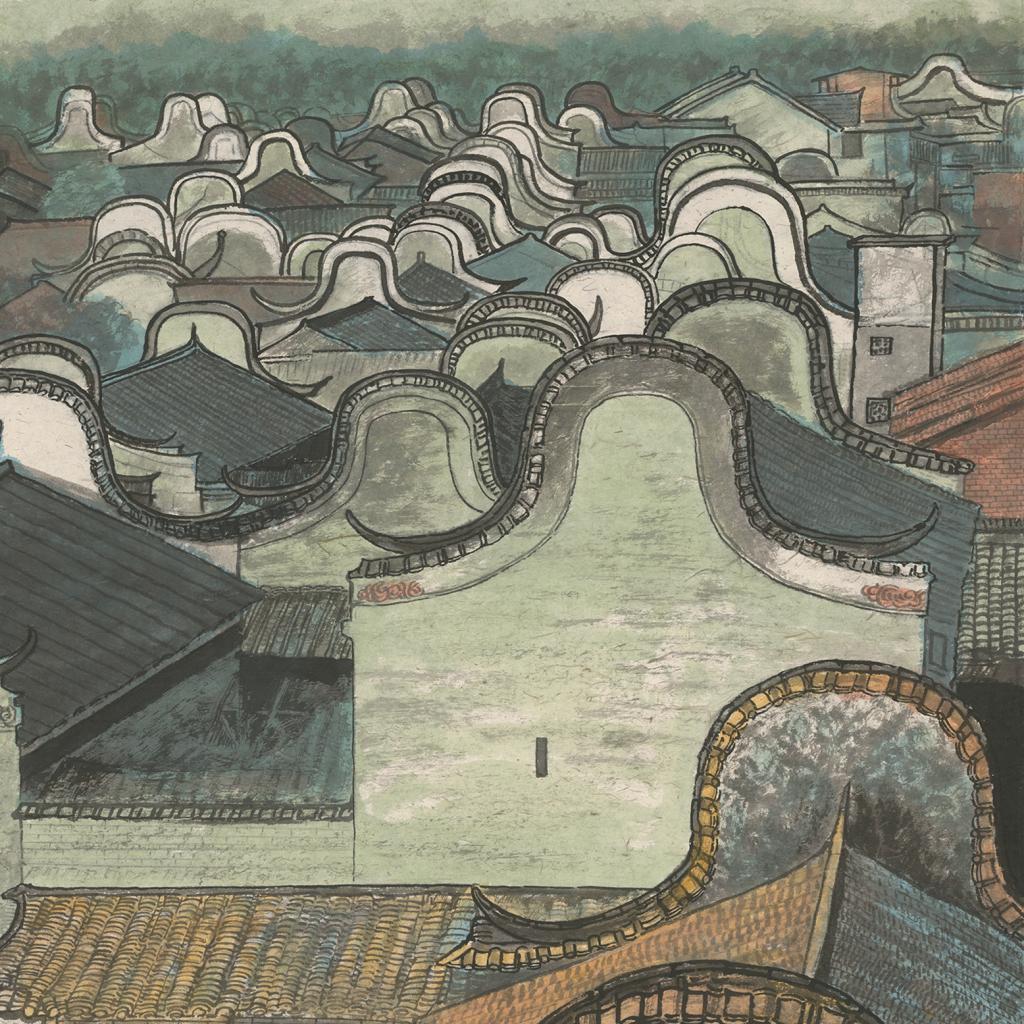 《粤·上岳古镇》(局部)2022年124x245cm纸本·彩墨 潘鲁生
