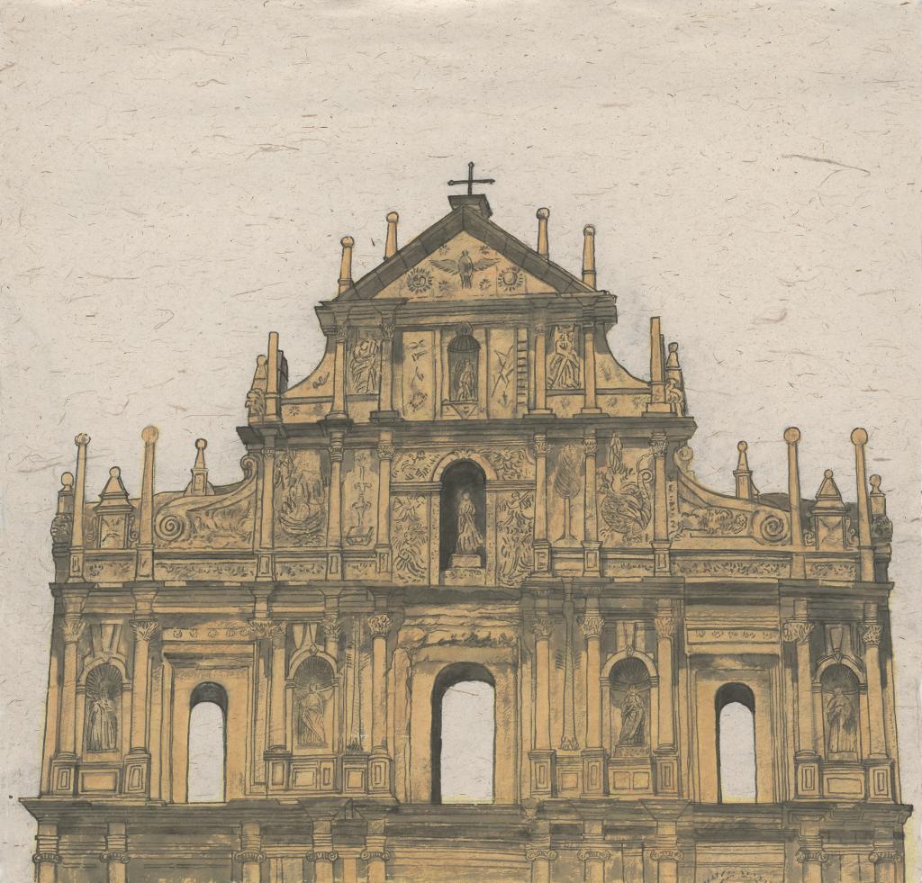 《澳·大三巴》2022年124x124cm纸本·彩墨 潘鲁生