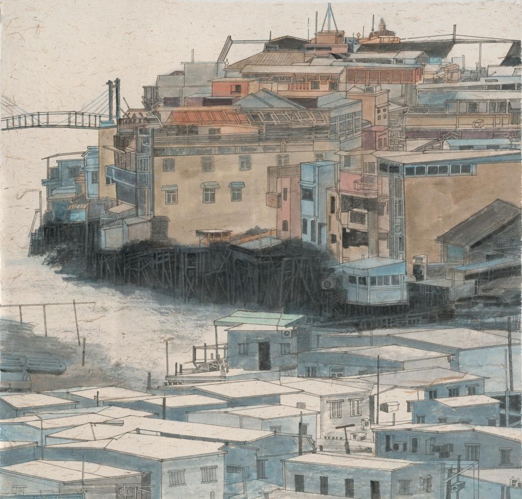 《港·大澳渔村》2022年124x124cm纸本·彩墨 潘鲁生