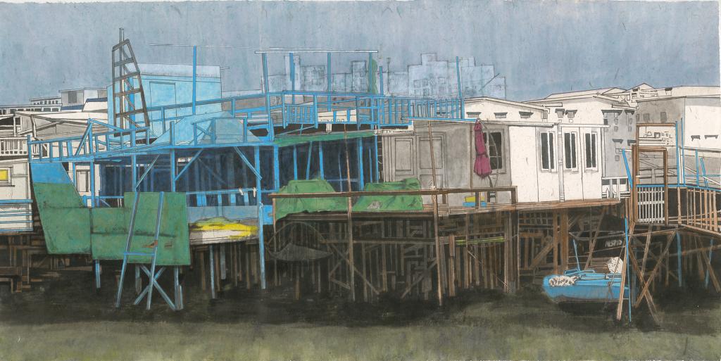《港·大澳渔港》2022年124x245cm纸本·彩墨 潘鲁生