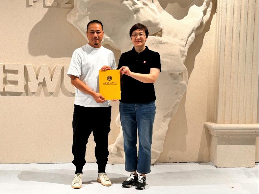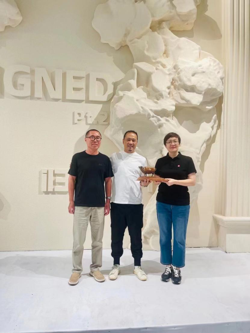 王晓娟专门走访看望了向为母校捐赠设立奖学金的97级雕塑校友于国强,并颁发捐赠证书和纪念品。