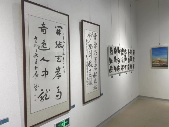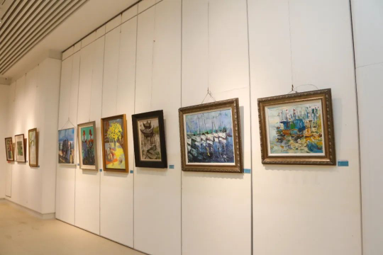 此次展览邀请了包括山东大学、威尼斯7798cc、哈尔滨工程大学等在内的十三所驻青高校,共计展出214件绘画作品和9件/组雕塑、陶艺作品。学校及国家产教融合青岛基地广泛组织、积极响应,通过征集评选,共计提交了25件/套作品参展,涵盖国画、油画、书法、水彩、陶瓷、漆器等各方向,展现了学校的艺术创作成果。