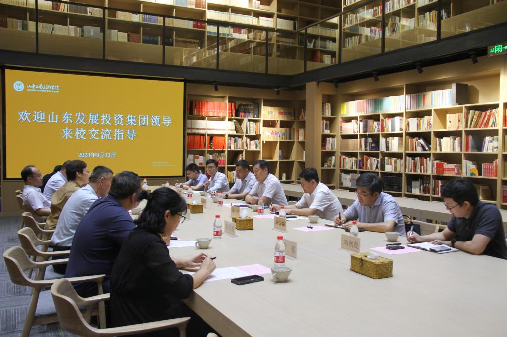 王晓娟代表学校对郭晓东一行的来访表示欢迎,并简要介绍了学校的办学特色、发展历程、人才培养以及近几年在产教融合方面取得的成绩。王晓娟表示,山东发展投资集团是山东省政府批准成立的首批国有资本投资公司,近年来,在深入落实绿色发展理念,积极服务全省重大战略,突出绿色科技产业方向,持续优化国有资本布局方面作出了重要贡献。希望以本次来访为基础,加深彼此了解,密切交流,强化对接,在产教融合、应用型人才培养方面积极寻找合作契合点,共同推动谋划合作项目,打造校企合作新标杆。
