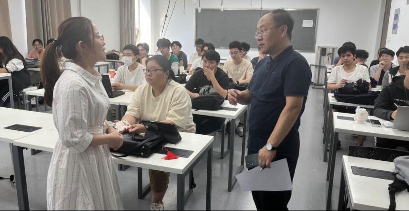 课后,董占军与任课教师和学生进行交流,了解学生的学习情况,肯定了任课教师的讲课状态和授课内容,鼓励教师在教学研究、教学方法改革等方面积极探索,不断提高课堂教学效果。