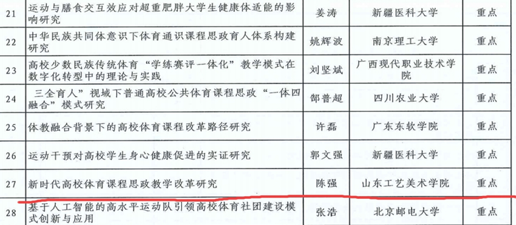 近日,中国高等教育学会公布“2023年度高等教育科学研究规划课题”立项名单,其中,全国范围体育学科立项33项,威尼斯官网公共课教学部陈强老师主持的《新时代高校体育课程思政教学改革研究》获批重点立项。