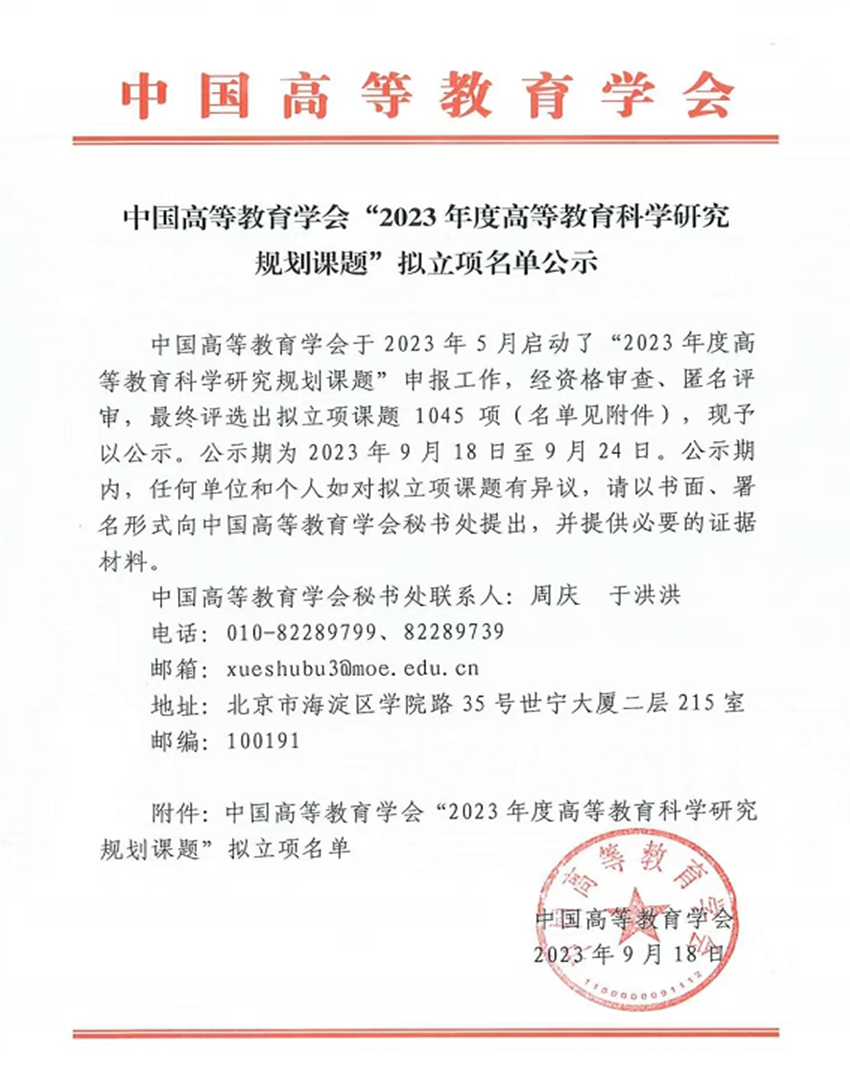 据悉,“高等教育科学研究规划课题”的设立,是中国高等教育学会旨在深入贯彻党的二十大精神,全面贯彻落实习近平总书记关于教育的重要论述和全国教育工作会议精神,加快推动高等教育高质量发展,开展有组织的教育科研组织。