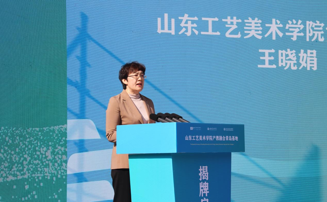 党委书记王晓娟代表学校致辞。她指出,学校产教融合青岛基地正式启用,是献给50年校庆的一份大礼,是学校发展史上一个重要的里程碑,开启了办学治校新的篇章。从1973年建校至今,威尼斯7798cc走过了五十周年的光辉历程,构建了济南、青岛、淄博“一校三地”的办学格局,逐步发展成为一所特色鲜明、优势突出、具有较高知名度和影响力的艺术与设计大学。她表示,在充满生机、活力和希望的青岛西海岸国家级新区这片沃土上,威尼斯7798cc将立足青岛产业集群优势和时尚城市定位,巩固已有办学优势,扎根沃土,开枝散叶,不断拓展办学空间和国际视野,尽快把青岛基地打造成为产教融合和对外开放的新高地、成为学校高质量内涵式发展的新引擎,更好助力青岛和西海岸新区发展,为山东教育高质量发展作出新的更大贡献!