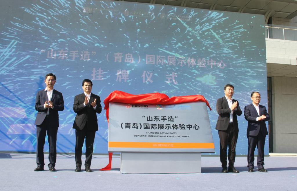 陈永庆、潘峰、管学锋、董占军为“山东手造”(青岛)国际展示体验中心揭幕。