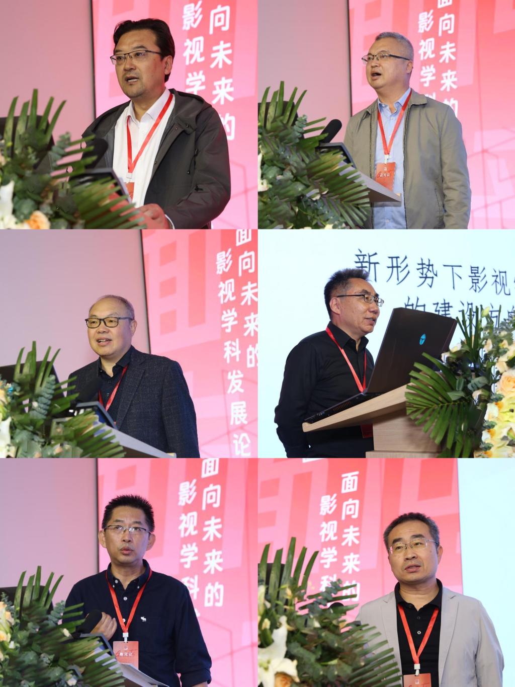 校际交流环节由数字艺术与传媒学院院长吴向阳主持,山东省高校戏剧与影视学类专业教指委委员、原青岛大学文学与新闻传播学院院长邱秉常,山东省高校新闻与传播学类专业教指委主任委员、山东师范大学新闻与传媒学院执行院长常庆,山东艺术学院传媒艺术学院院长刘昂,聊城大学传媒技术学院院长郭峰,曲阜师范大学传媒学院数字媒体系主任孔勇围绕会议主题分别作题为《高校影视教育中AI技术的应用与发展趋势》《全媒体背景下影视学科发展的思考》《多维语境下高校影视艺术教育的理念、关系与路径》《新文科背景下地方高校传媒类专业实践教学体系的建设与思考》的发言。