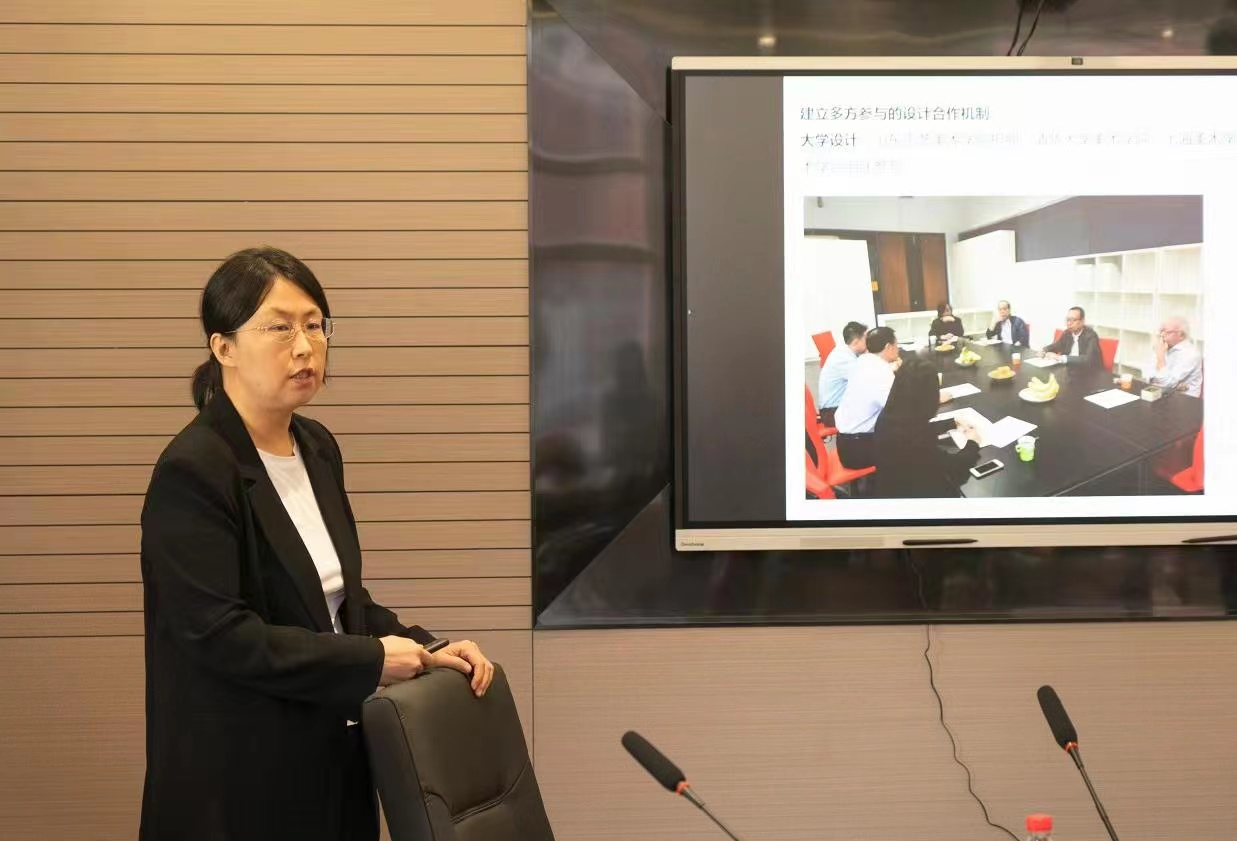 发展规划处处长、上合国际设计研究院执行人殷波作上合国际设计研究院工作汇报,她就上合国际设计教育与文化交流、设计产业协作、设计政策制定、非物质文化遗产保护等领域包含的协作经验与契机进行讲解,提出了“面向未来的设计交流与协作”及“回溯传统的文化保护与再设计”两个重点方向。结合上合国际设计研究院在设计政策研究、设计智库建设、设计课题攻关、设计成果传播等方面的工作职能与构想,她希望进一步把握上合组织国家间设计商贸、文化、教育交流合作需求,对接上合示范区经济文化建设需要,推进科研联动、产教融合,服务发挥产教融合基地“排头兵”作用。